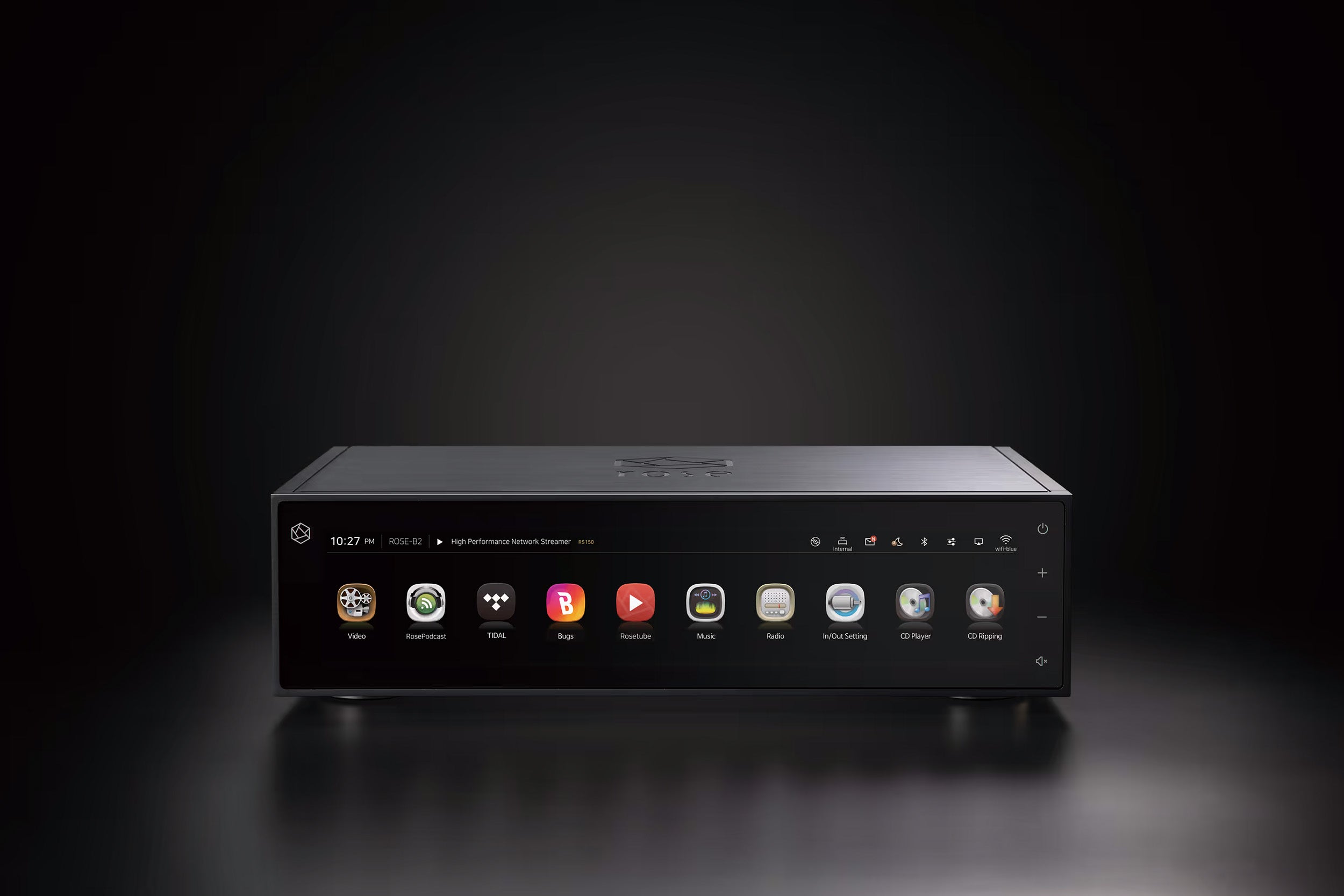 Den imponerende 14,9-tommers højopløsnings IPS-touchscreen gør det nemt at navigere gennem dine musiksamlinger og streamingtjenester. RoseOS tilbyder en intuitiv og tilpasselig brugerflade med visuelt imponerende VU-metere og en klar visning af albumkunst og metadata, synligt fra hele rummet. Den hurtige respons og brugervenlige navigation gør betjeningen af RS150B til en sand fornøjelse.