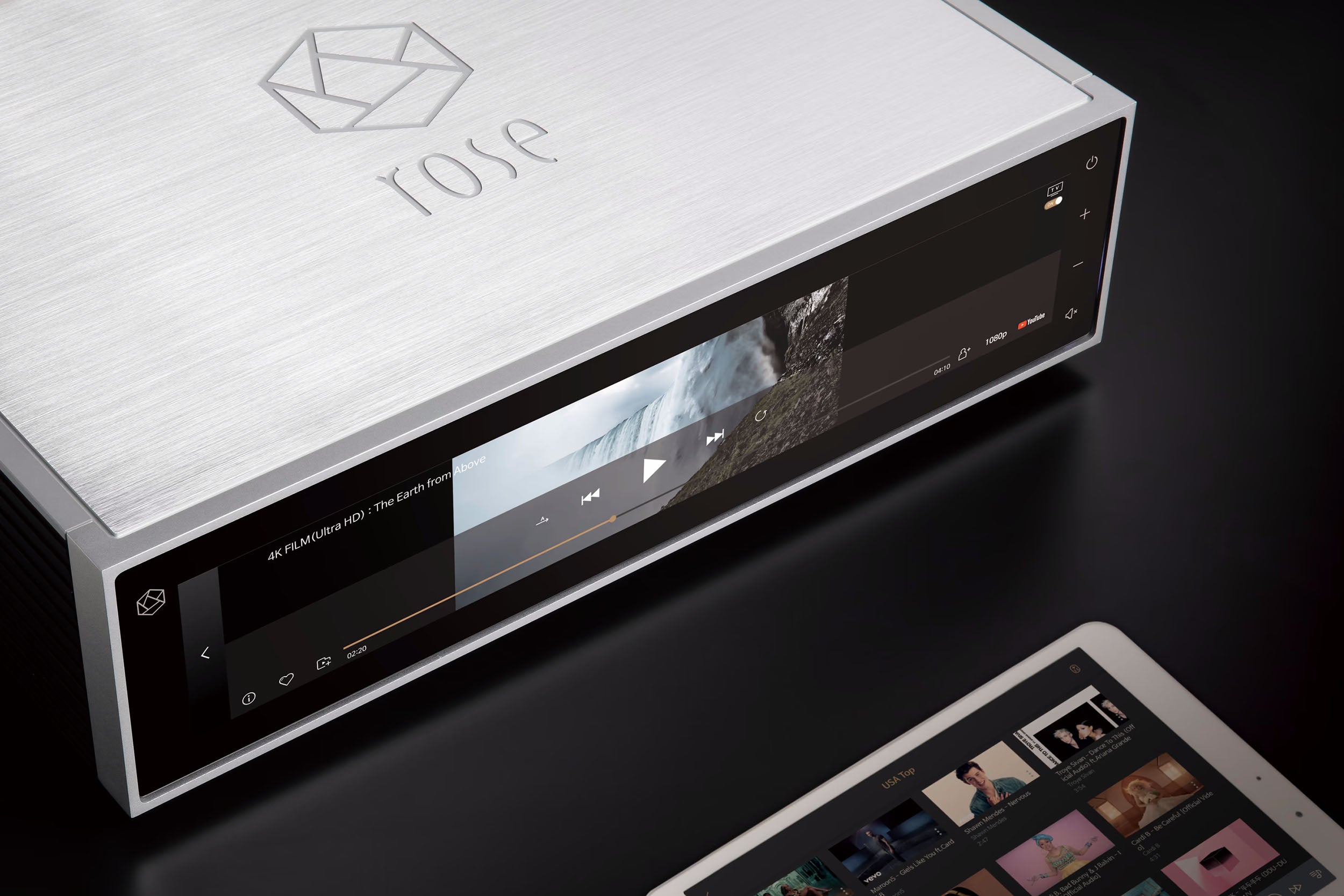 RS150B understøtter en bred vifte af streamingtjenester, herunder Apple Music, Spotify, Tidal, Qobuz, internetradio og RoseTube. Med trådløs tilslutning via USB dongle eller kablet med gigabit ethernet kan du nemt streame musik i højeste kvalitet. Rose Connect app'en gør det muligt at styre og administrere din musik direkte fra din smartphone, tablet eller computer.