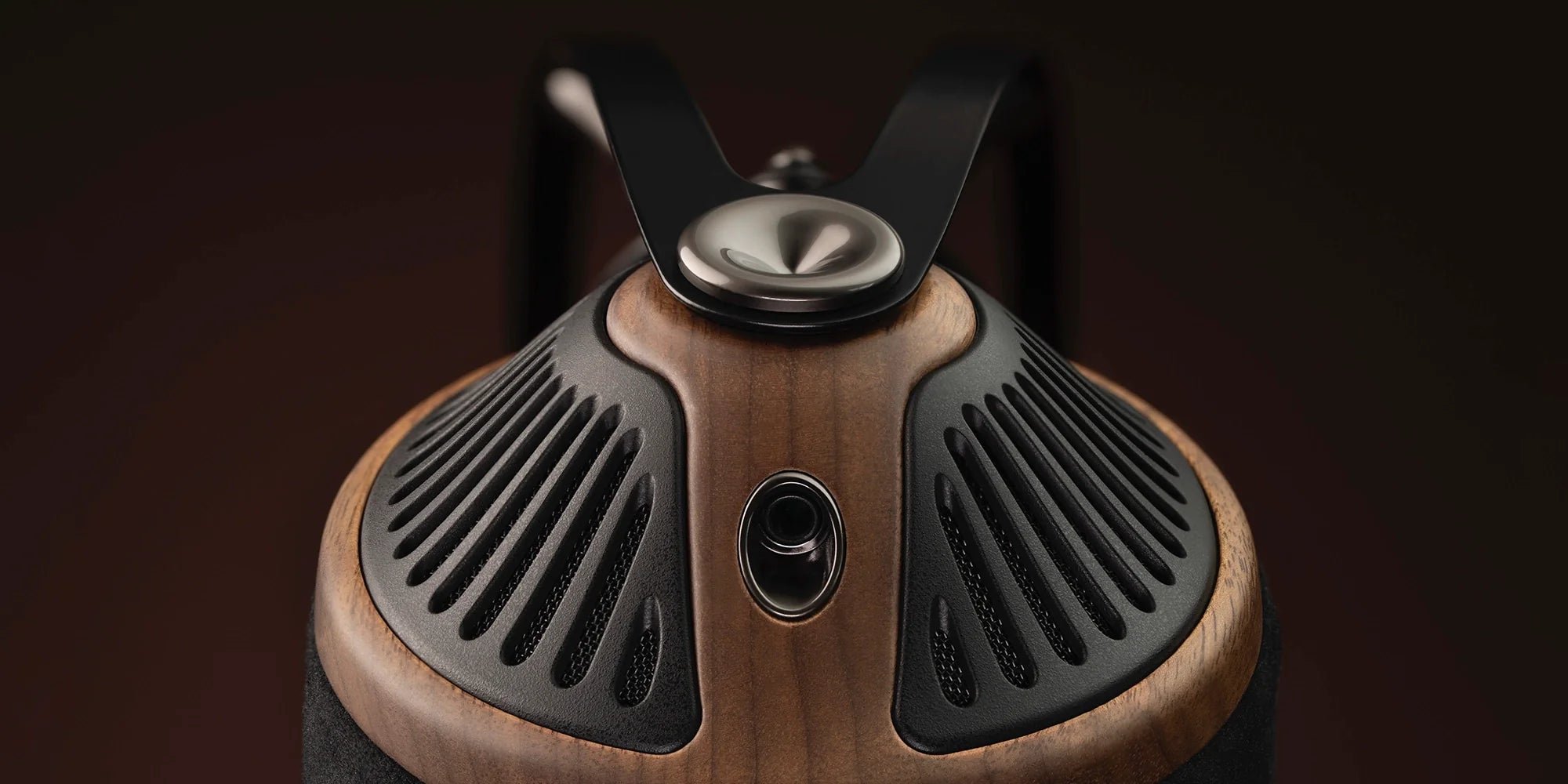 Med sit udgangspunkt i mid-century modern-æstetik kombinerer 105 SILVA den varme glød fra massivt valnøddetræ med moderne industrielle materialer. Den radiale grill går i ét med træet og fremhæver håndværkets dybde. Hovedbøjlen i manganstål giver samtidig fleksibilitet og styrke, mens beslagene i PVD-coated zinklegering understøtter helheden med en subtil metallic finish.